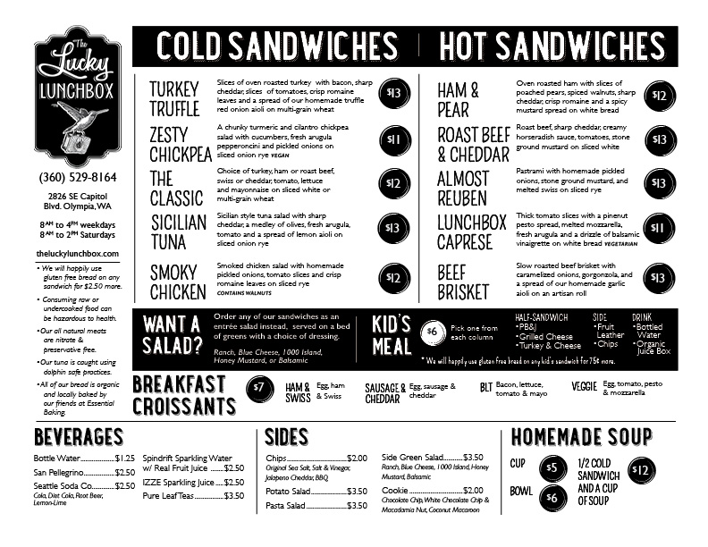 *Delivery available only within a 3 mile radius of The Lucky Lunchbox and between the hours of 10:30am and 1:30pm only.